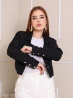 Transforma tu look con este blazer curto feminino, ideal para cualquier ocasión. Con un diseño moderno y corte ajustado, este blazer combina estilo y comodidad a la perfección.